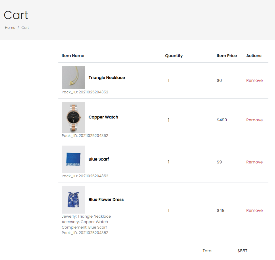 Also with a few tweaks you can only display the main product, this way is much more easier for the user to identify the package that is purchasing: